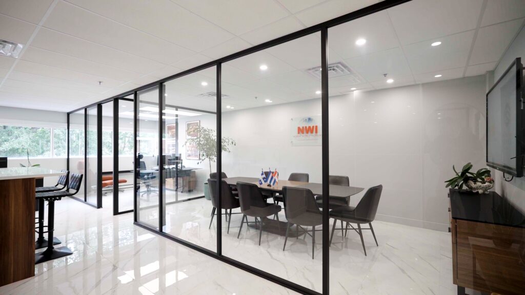 North World Industries, entreprise active à l’international avec plusieurs succursales, a établi son siège principal au Québec afin de soutenir sa croissance et renforcer sa présence sur le marché nord-américain. Dans un contexte où elle reçoit régulièrement des partenaires et représentants majeurs du secteur de l’import-export, l’aménagement des bureaux devait refléter une image forte : confiance, transparence et professionnalisme. Le mandat consistait à concevoir et réaliser des espaces de bureaux commerciaux modernes, adaptés aux rencontres d’affaires, tout en intégrant une qualité d’exécution élevée et une fonctionnalité optimale.